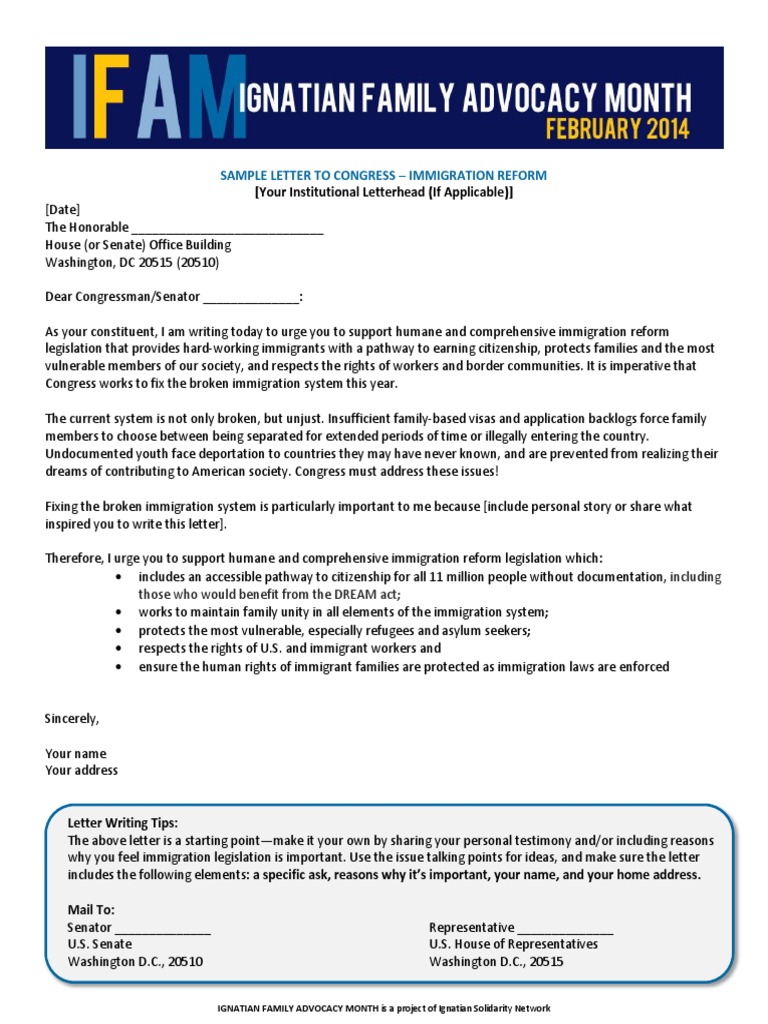 Sample Letter To Congressman Immigration